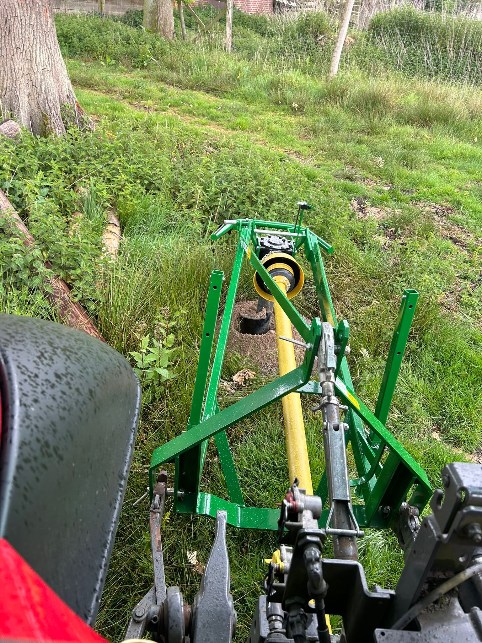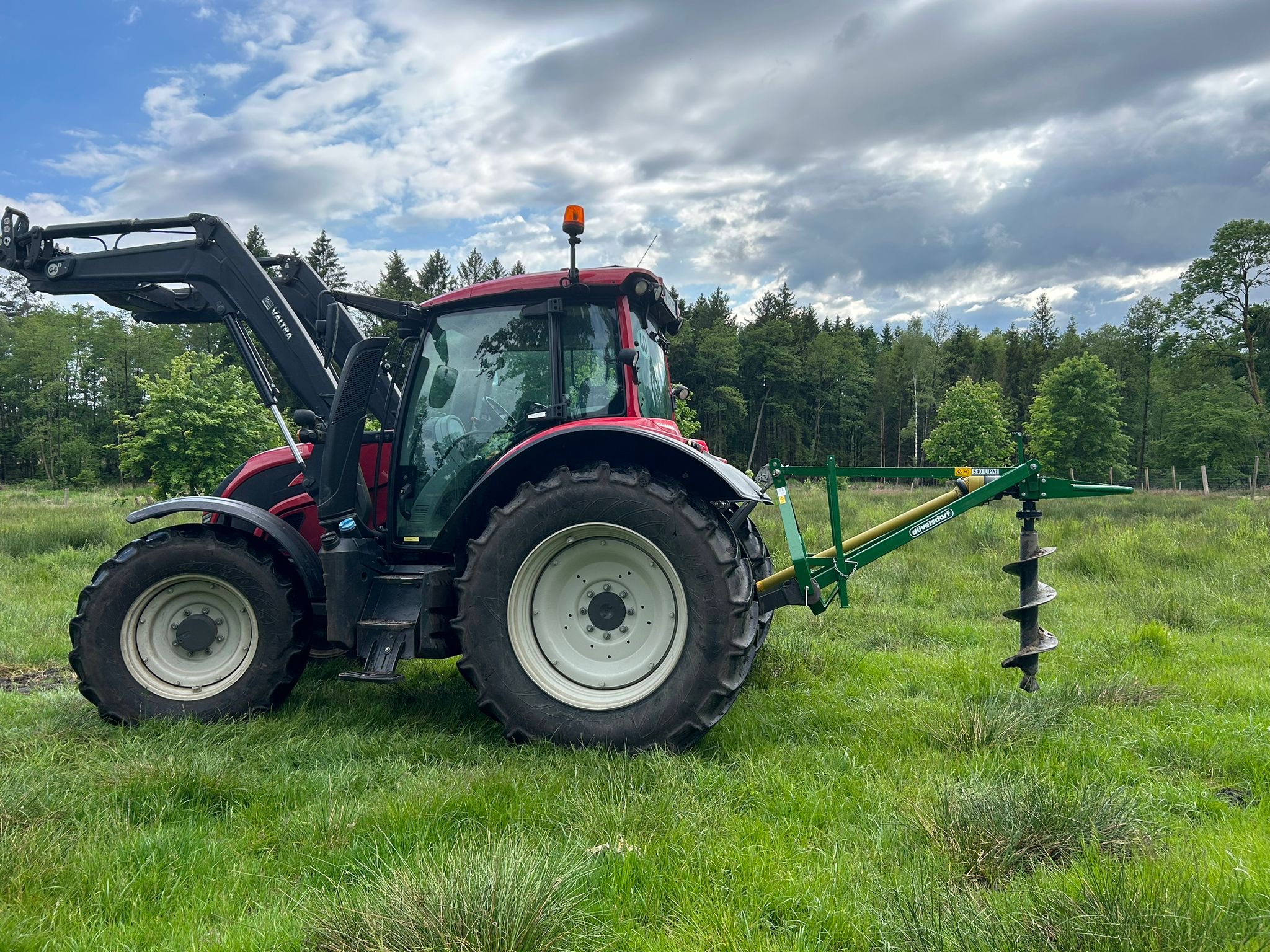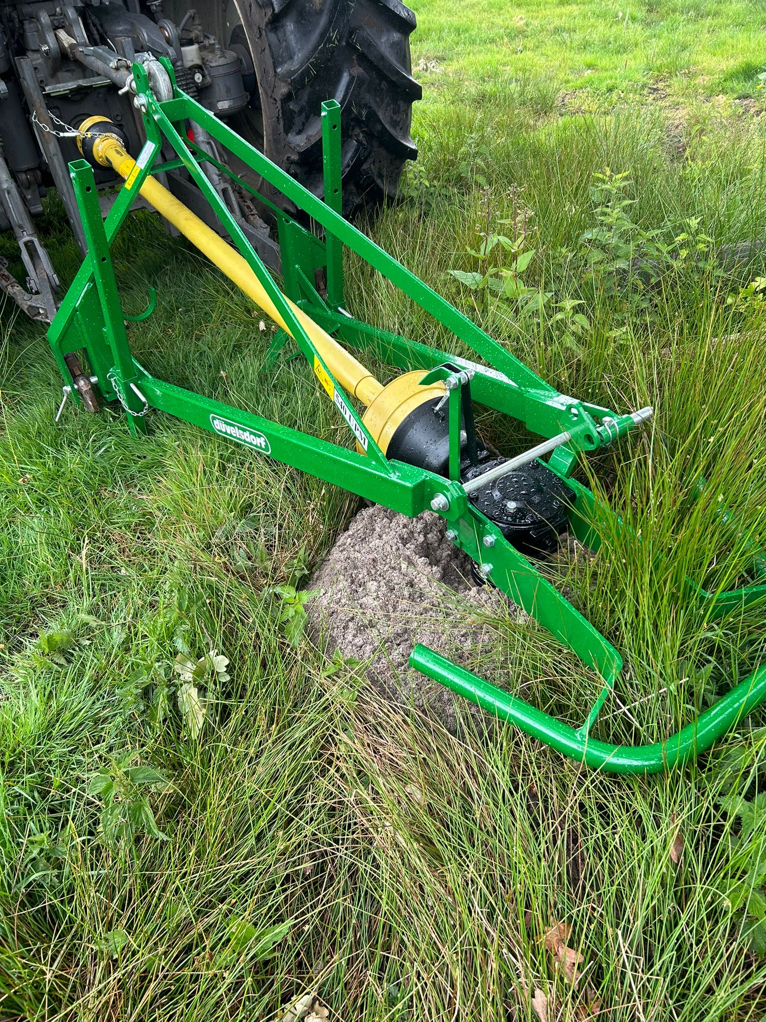 Die mitgelieferte Gelenkwelle ist mit einer Rutschkopplung ausgestattet. Sie treibt das Ölbadgetriebe an. Die Bohrtiefe beträgt 100 cm. Die Konstruktion ermöglicht ein platzsparendes und sicheres Abstellen sowie ein An- und Abkoppeln an den Schlepper.