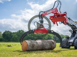 Die Forstzange KOMBI mit Rotator eignet sich zum Stapeln und Rücken von Holzstämmen. Der Endlosrotator mit einer Traglast von 4,5 t und der Greifer mit 1560 mm Öffnungsweite ermöglichen ein komfortables Arbeiten.