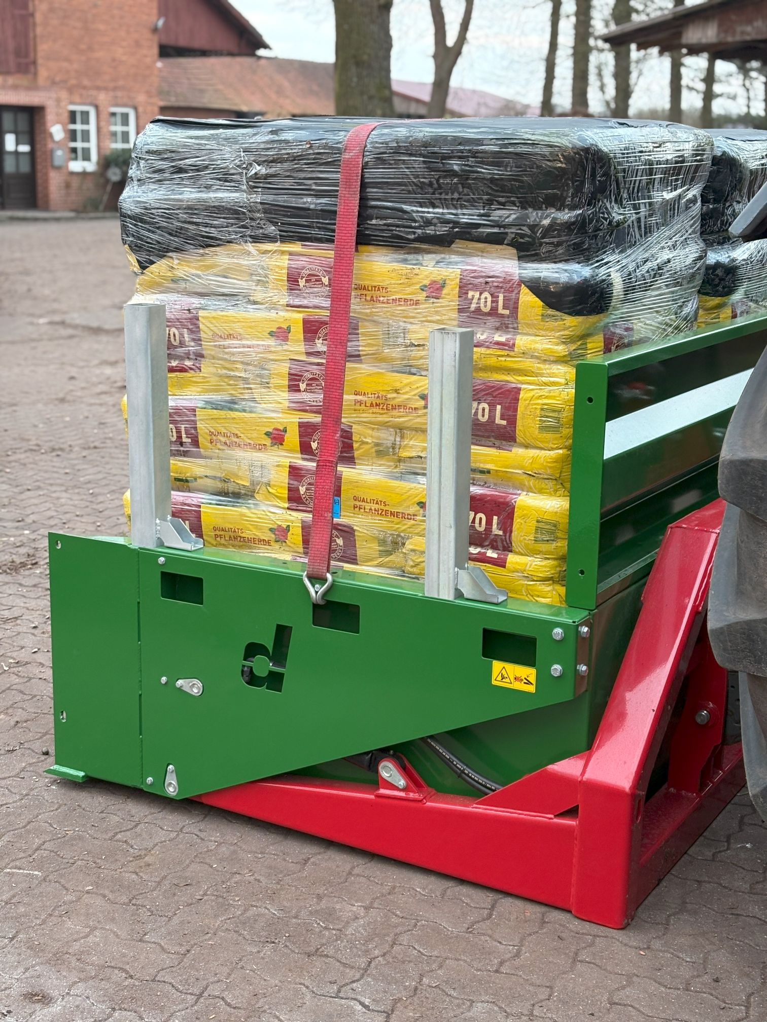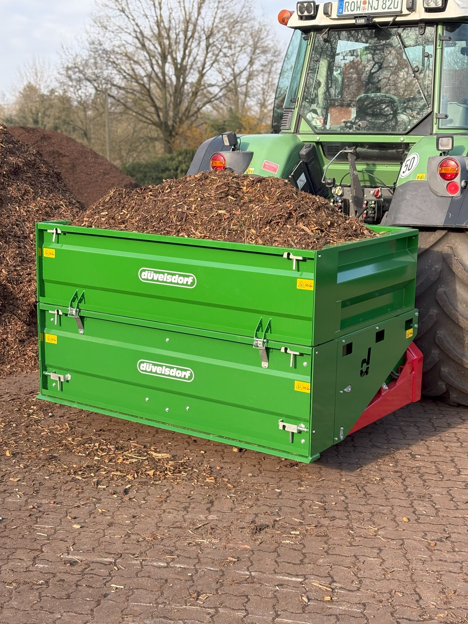 Alles weitere an Zubehör kann jeweils nur einzeln am Gerät montiert werden. Angebaut werden kann der Heckcontainer HD in der Dreipunkt KAT 2 und mittels EURO Aufnahme am Frontlader. Durch einen Auskippwinkel von 90° kann der Heckcontainer HD als Hochkippschaufel im Frontlader genutzt werden.